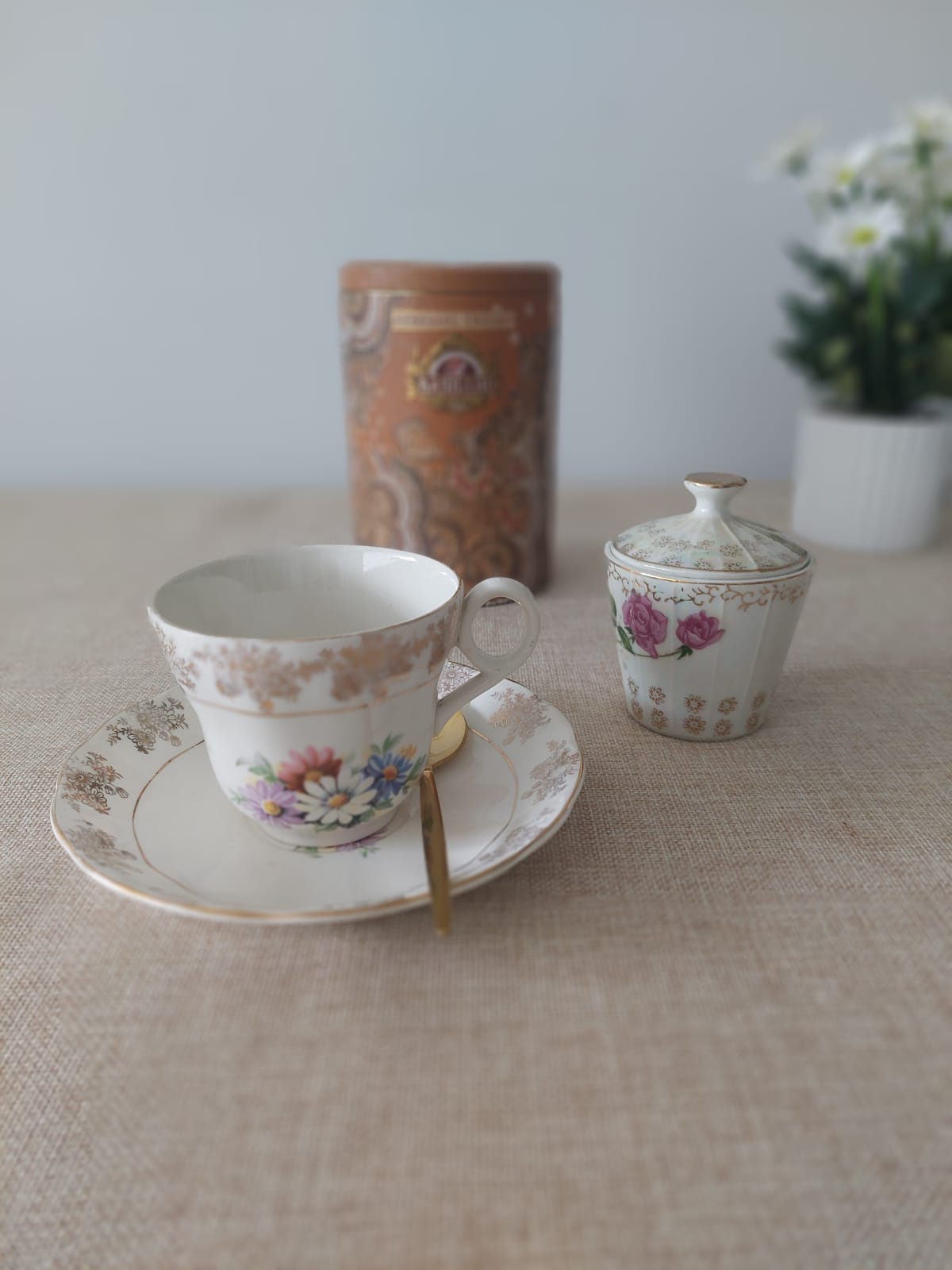 | Tipo | Set de té armado (dúo + azucarero con tapa) |
