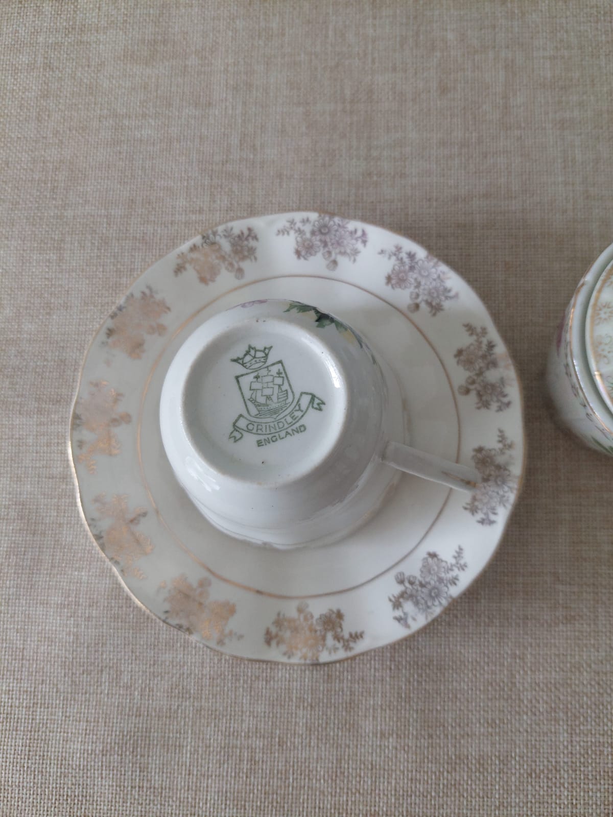 Set compuesto por dúo de porcelana y azucarero Grindley England, todos en perfecto estado sin detalles. Ideal para armar un pequeño servicio de té con encanto vintage inglés.