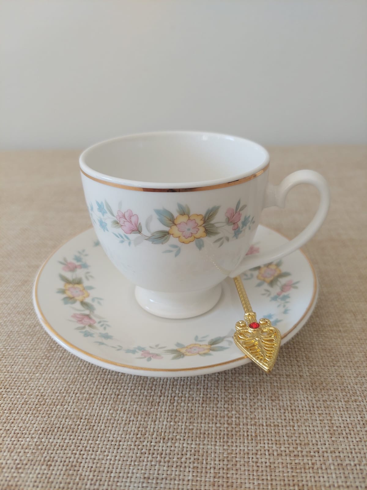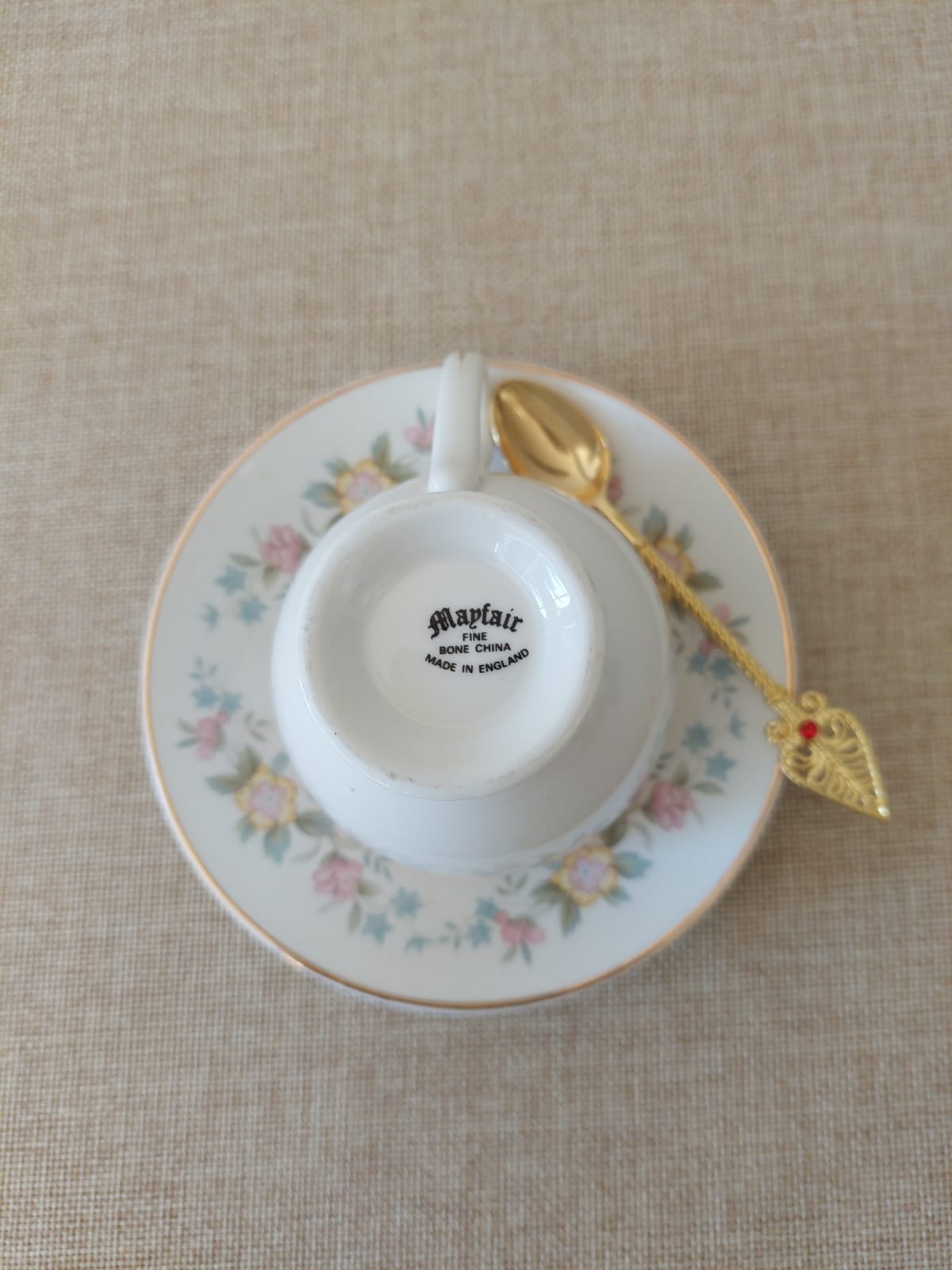 Elegante set de 2 dúos de café en fina porcelana de la reconocida marca Mayfair. Cada dúo incluye taza y platillo a juego, en perfecto estado. Ideal para regalar o para lucir en tu mesa con ese toque vintage que transforma cada momento en una experiencia especial.