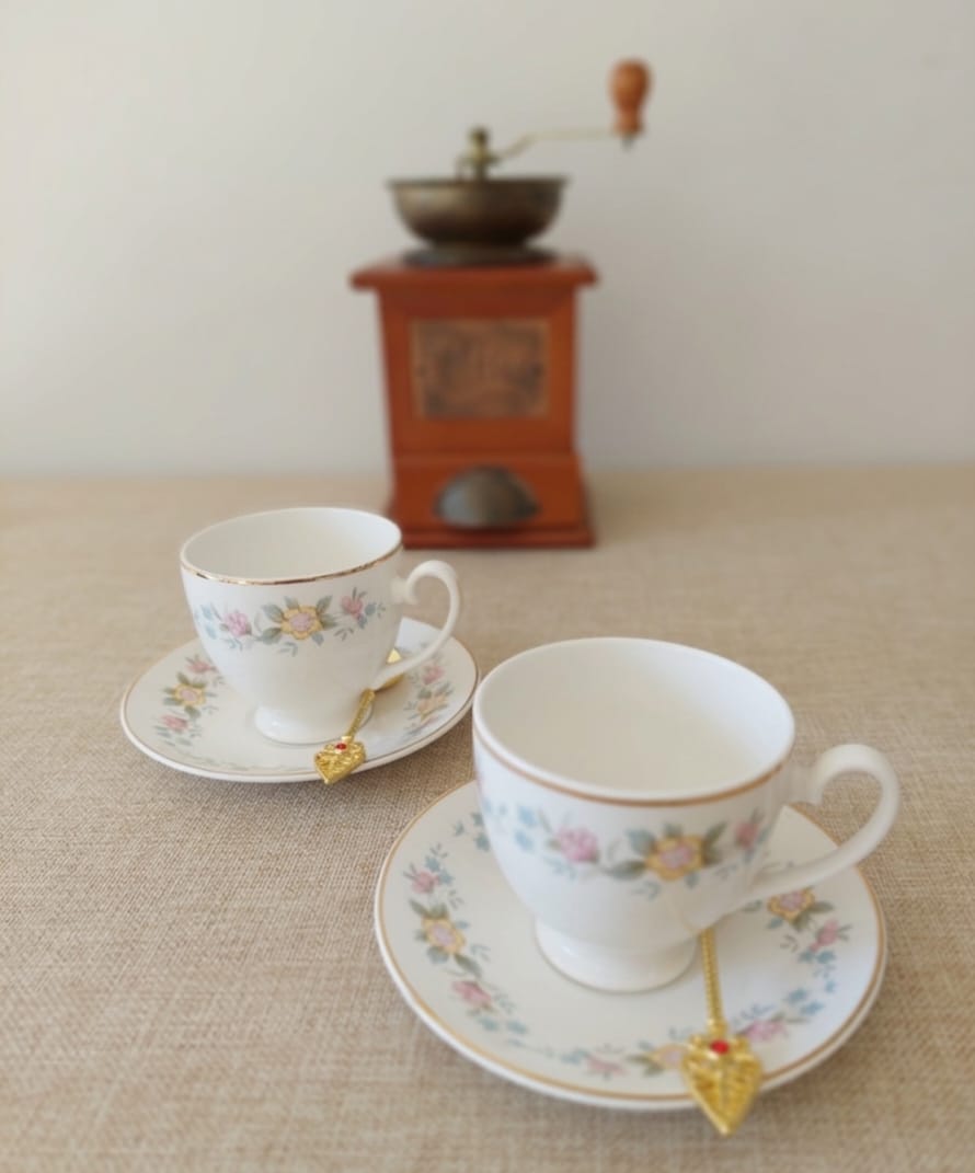 NUEVO | Descubre la sofisticación de lo vintage con este hermoso set de 2 dúos de café de porcelana Mayfair. Cada pieza esta cuidadosamente seleccionada por Nova Vita para traerte lo mejor de otra época, en condiciones impecables.