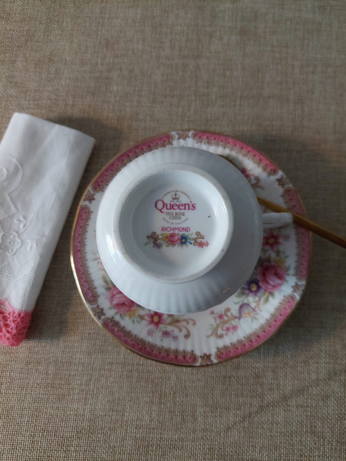 | Marca | Sello | Queen's Fine Bone China, patrón Richmond |